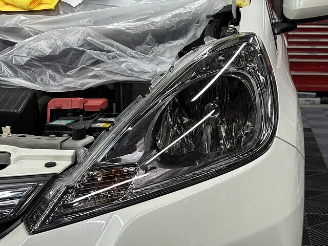 まずはヘッドライト表面のリペアを行ってクリアにし、そのままだとまたすぐに劣化してしまうので、コーティングをするかプロテクションフィルムを貼って表面を保護する必要があります。