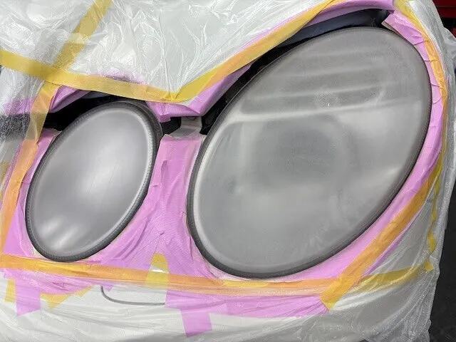 プロテクションフィルムを貼る場合、車種ごとのヘッドライトの形状にカットされているフィルムを貼る「プレカット方式」と、大きめにフィルムを貼って後からライトの形状に合わせてフィルムをカットする「バルク方式」がありますが、今回はバルク方式にて貼りました。