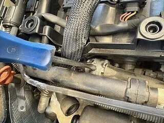 2本のパイプが一緒になった部品ですが、上側のパイプは冷却水ではなくバキューム用で、